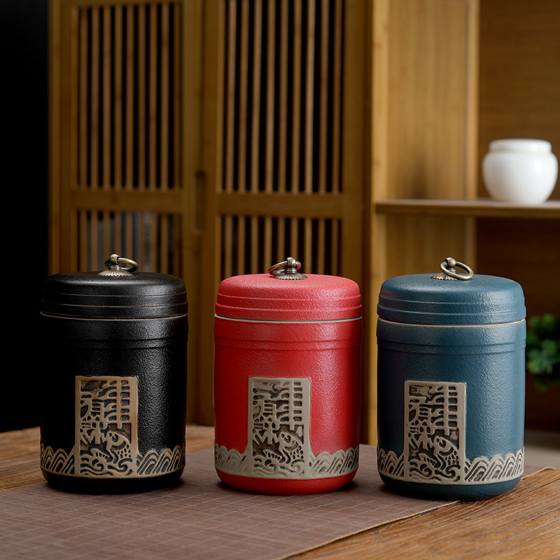 中国式レトロ陶磁器茶葉缶密封缶粗陶茶倉プーアル包装箱黒茶紅茶覚醒茶缶家庭用