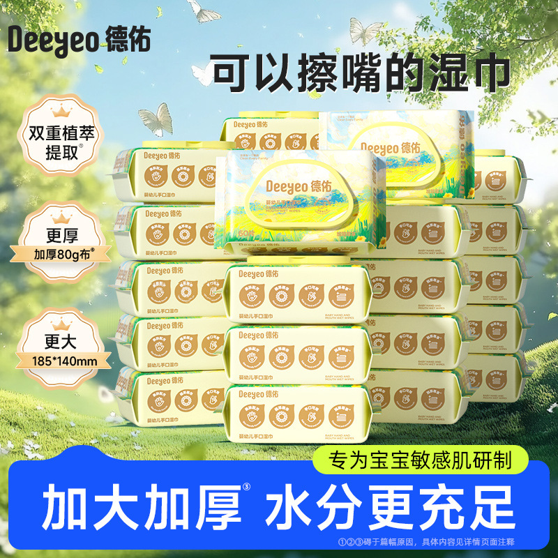 徳佑乳幼児の手の口の純綿のウェットティッシュの新しい赤ちゃんのウェットティッシュの家庭用80は1包みを引き出して厚い服を入れます。