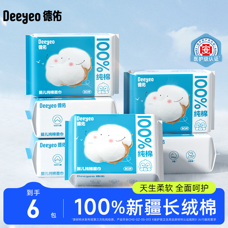 徳佑純綿綿柔巾乳児専用80枚6包乾湿両用拭き取り式新生児赤ちゃん
