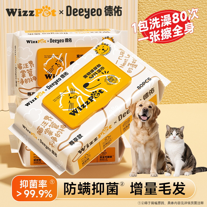 Deyou ペット用ウェットティッシュ 犬猫専用ウェットティッシュ 洗わない顔と足の拭き取りで涙やけを除去し、毛を滑らかにします