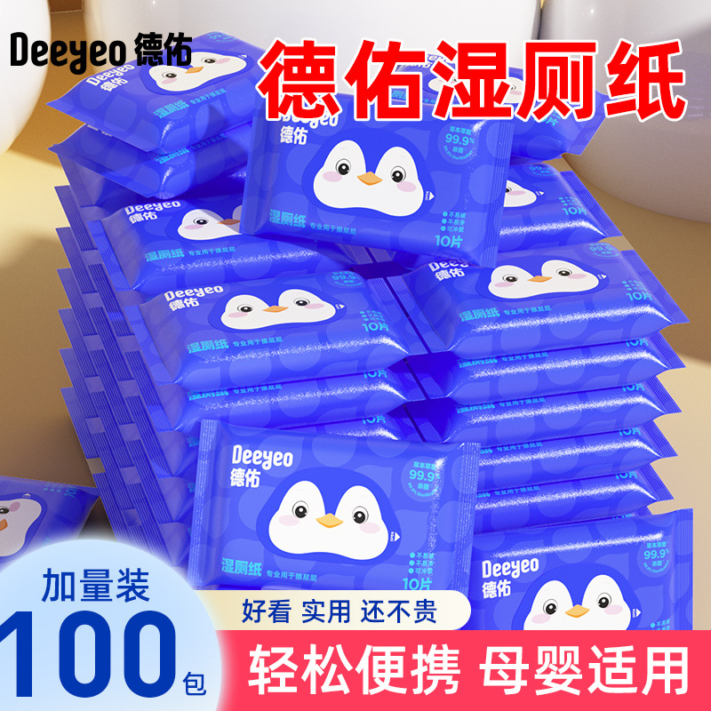 Deyou ウェットトイレットペーパー 10 枚 100 パック流せるウェットトイレットペーパー男女兼用増粘トイレ掃除用ウェットティッシュ