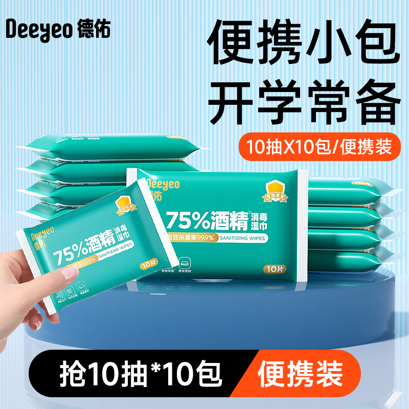 デユー 75% アルコールウェットティッシュ 携帯用小包装 10枚入り 使い捨て 殺菌専用 学生・子供向け