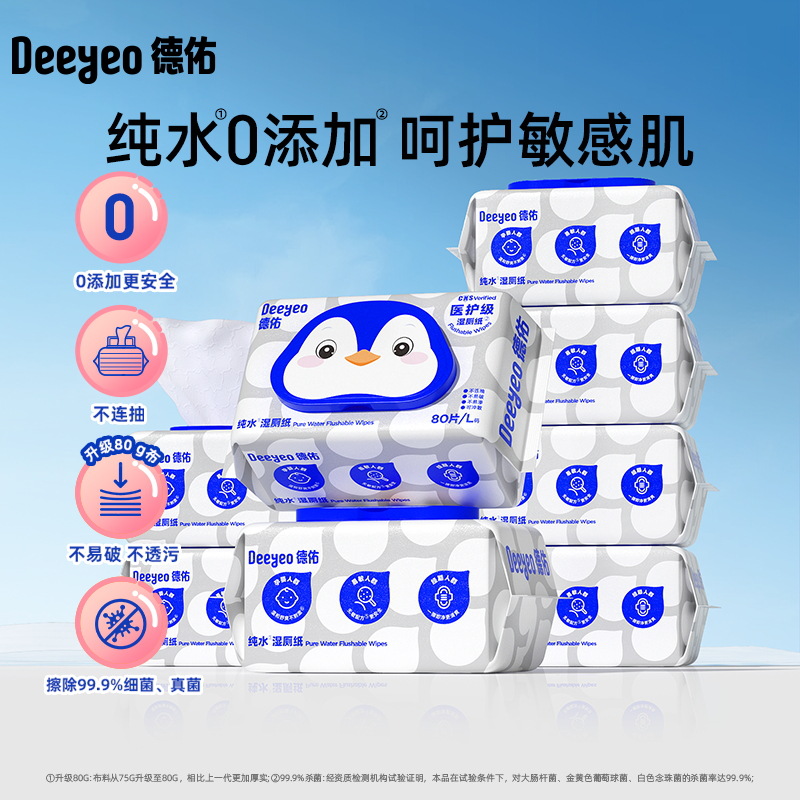 徳佑純水ウェットティッシュ赤ちゃん成人男女プライベートルーム家庭用お得な大包装80抽選6包