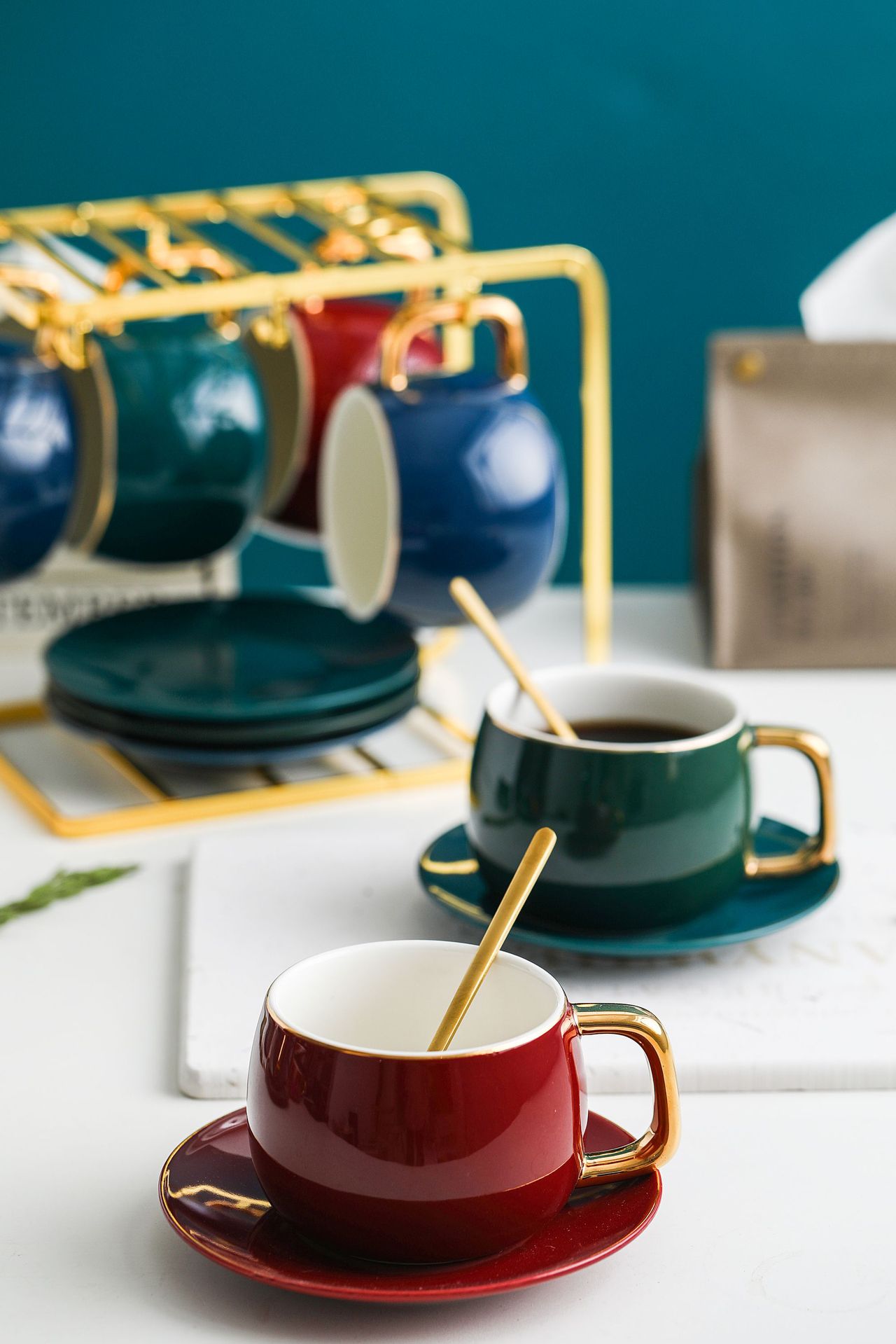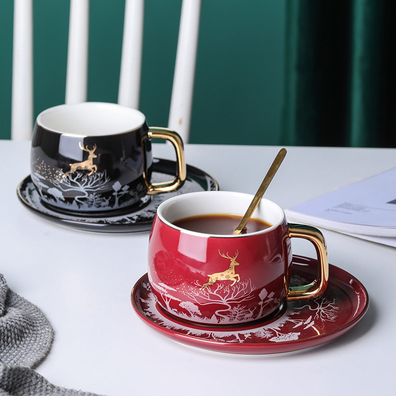 陶磁器カップコーヒーカップ午後ティーカップ牛乳カップコーヒーカップ皿付きスプーン付きギフトセットカスタマイズロゴ