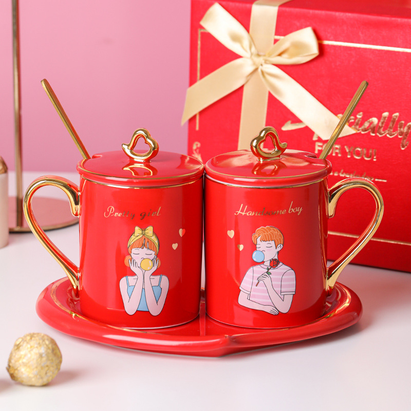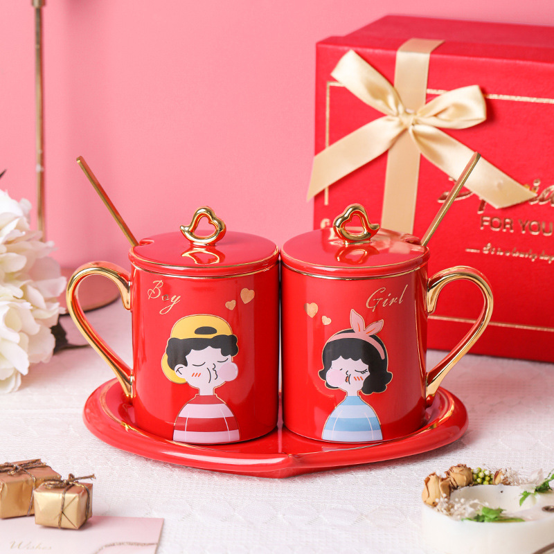 北欧マグカップ高颜値カップルコーヒーカップ皿誕生日プレゼントカップ蓋付きスプーン付きギフトボックス