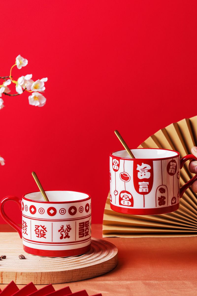 民族風陶磁器マグカップ【赤系】カップカップルカップカップルクリエイティブカップ大容量