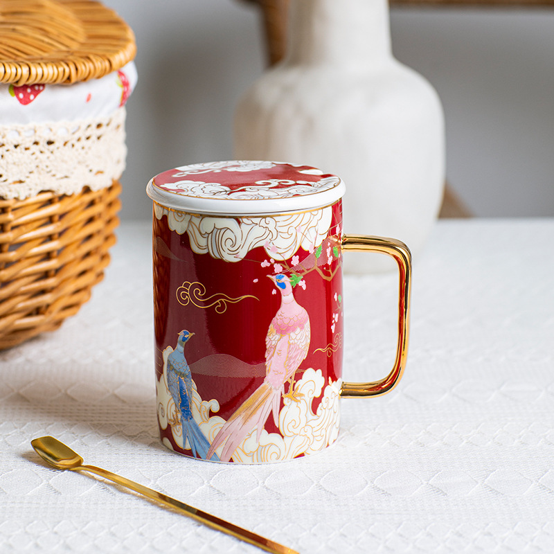 クリエイティブ国潮風おめでたいマグカップ事務カップカップル対カップギフトボックススプーン付き蓋付きカスタマイズロゴ