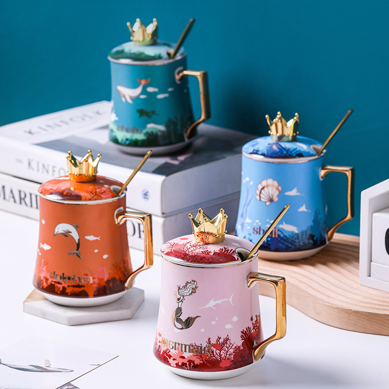 クリエイティブ誕生日プレゼント実用カップカップカップカップマグカップ蓋付きスプーン付き陶磁器カップ個性ギフトボックス