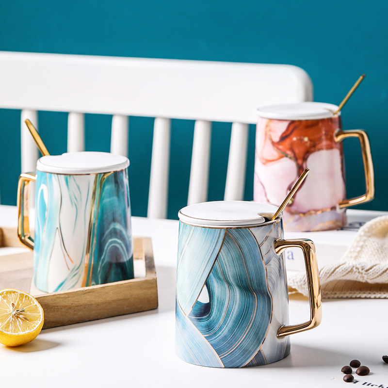 北欧セラミックマグカップ蓋付きスプーンinsカップカップルカップクリエイティブ個性的なファッションかわいいギフトセット