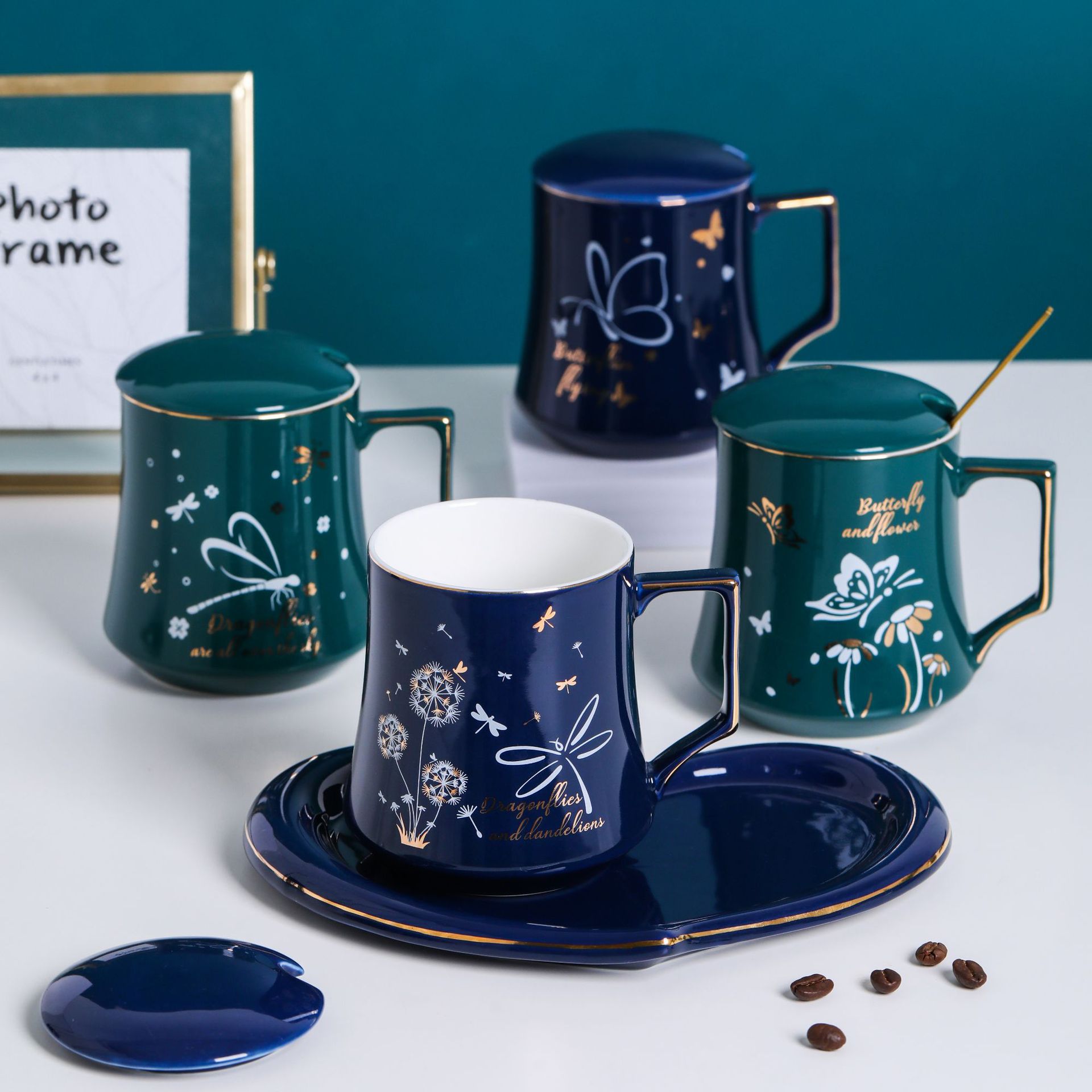 陶磁器創意マグカップ蝶北欧カップル個性実用ギフトプラスロゴ蓋付きスプーン付きギフトボックス