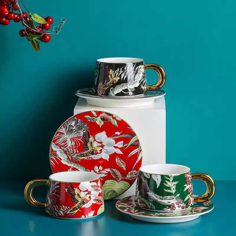 陶磁器コーヒーカップ皿セット国潮復古風家庭用午後の茶器とスプーンをセットしてロゴを決めることができる