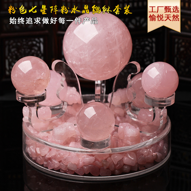 天然ピンククリスタル貔貅セブンスターアレイシトリンボール装飾品工芸品卸売スピリチュアルストーン彫刻風水