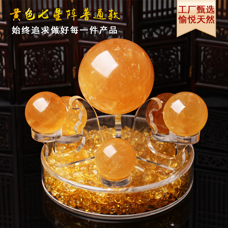 卸売り天然黄玉七星陣米黄玉球家業水晶風水置物工芸品