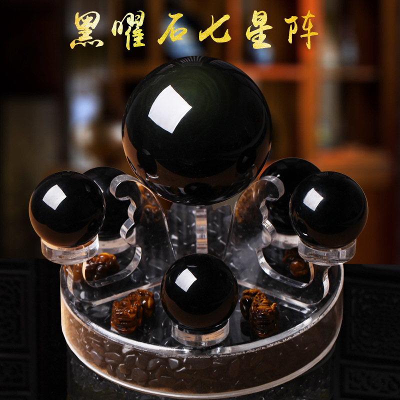 卸売り天然黒安石スタンドベース七星陣置物水晶玉黒安石球風水球鎮宅プレゼント