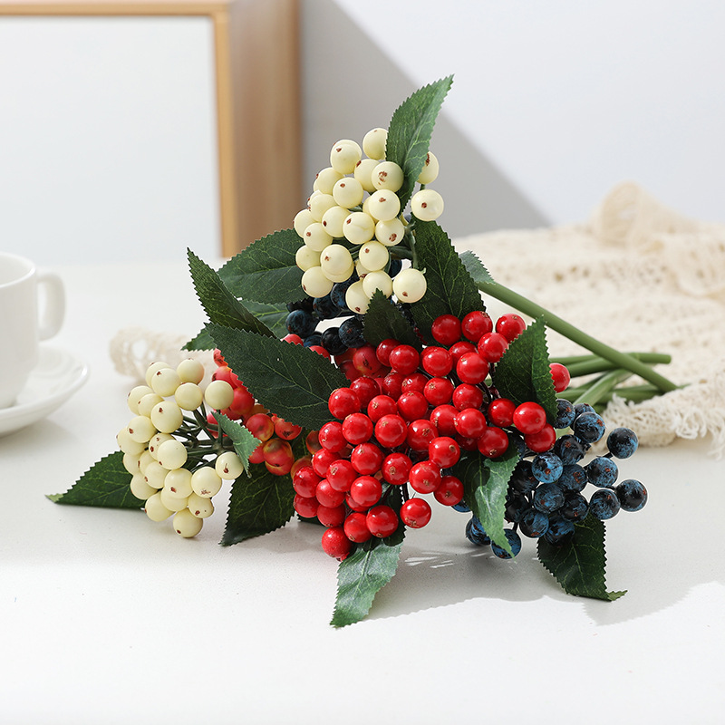 ベリーレッドフルーツ、小さなホーリーベリー、フォーチュンフルーツ、富の野の果実、クリスマスフルーツ、家庭用、結婚式、リビングルームの装飾、緑の植物、高精度模造品