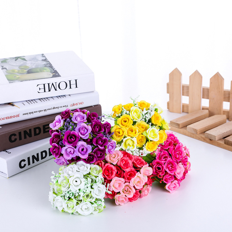 模造花バラの花束15頭の絹布の小さいバラの造花の結婚式の講堂は花の花嫁の手を飾って花を持ちます。