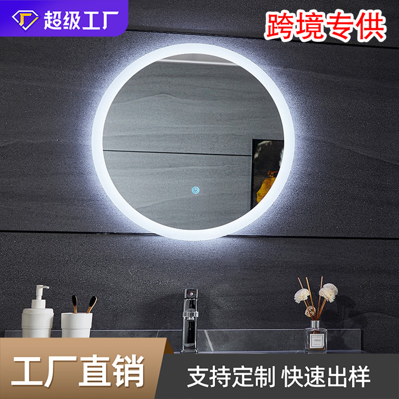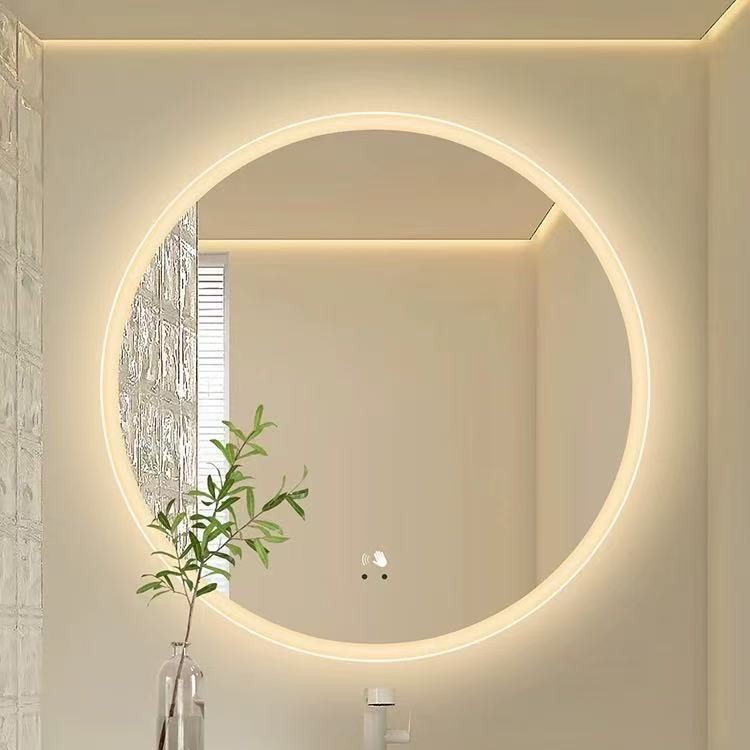 フレームレスledランプミラー家庭用ヨーロッパ式円形壁掛け浴室ミラースマートトイレ浴室ミラーランプ一体