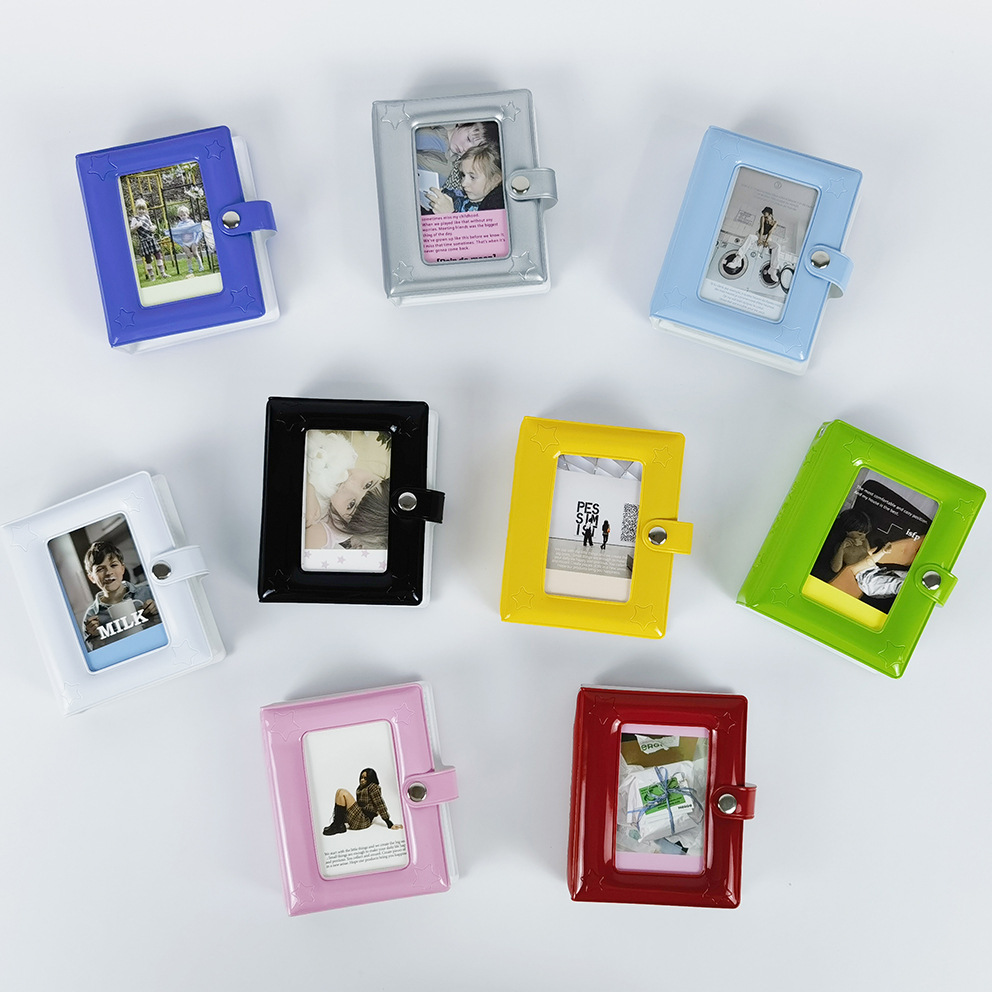 卸売供給ミラーパテントレザースターモデル長方形中空小型 3inch ミニフォトアルバム小さなカードスターショット収納ブック