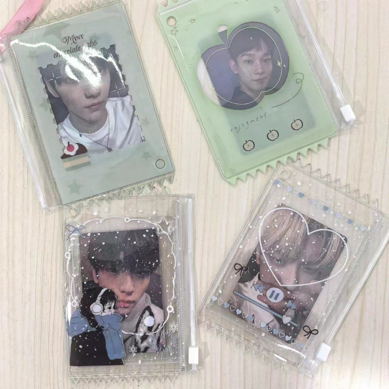 Insポニーポーリー窓透かし彫り3インチミニラケット漫画カード写真純色収納アルバムカードバッグ