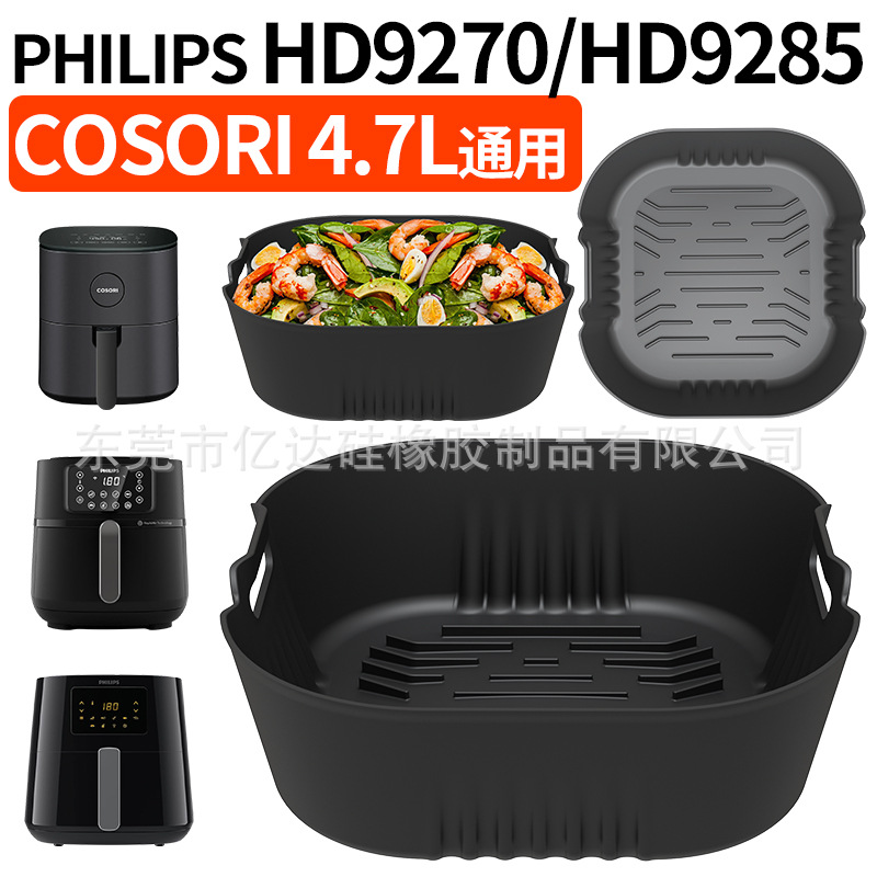 国境を越えた新しいフィリップス HD9285/9270 エアフライヤー シリコン ベーキング パン アクセサリー COSORI4.7L スクエア