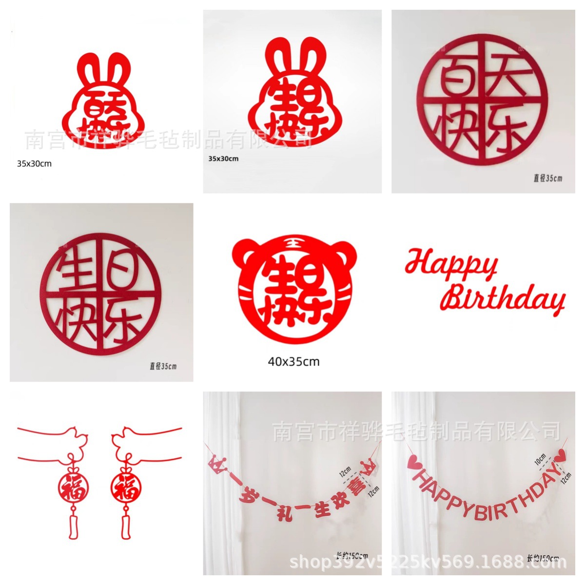 ネットレッドHBDフェルト誕生日子供誕生日パーティー写真背景壁貼り装飾道具用品