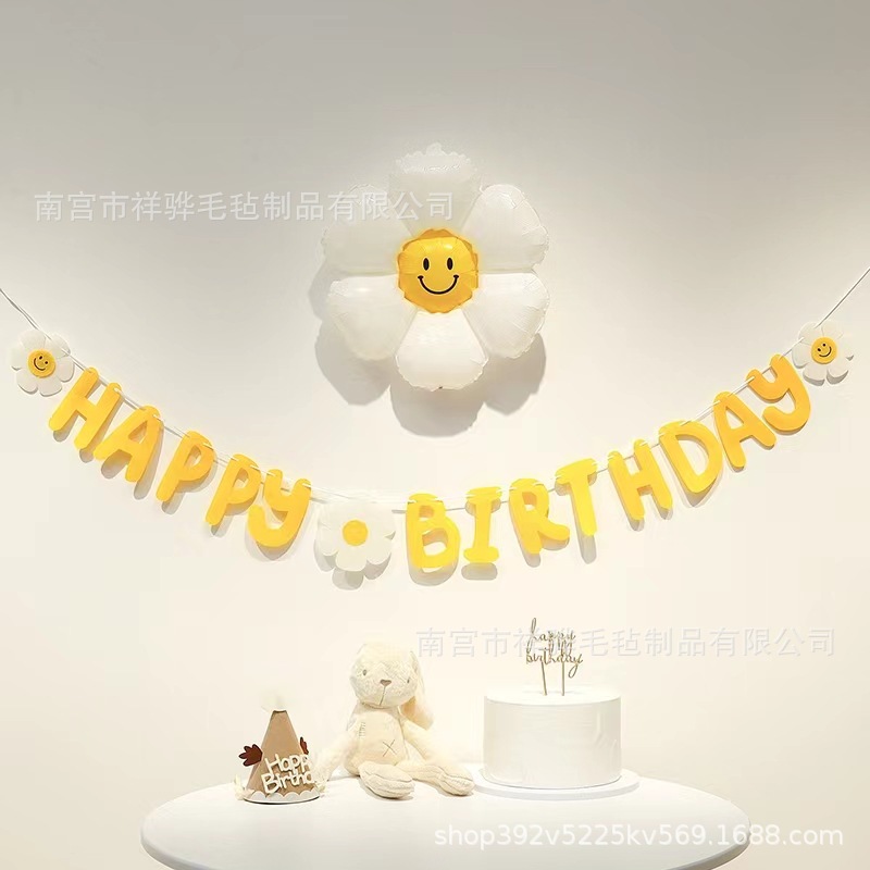 Ins風の小さい菊の花の不織布の誕生日の腹ばいの体は旗を引いて花の条のシーンの雰囲気を引いて写真の道具を飾ります。