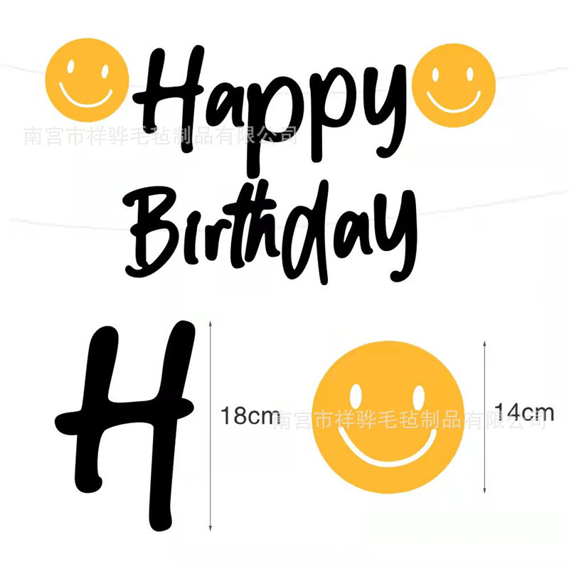 ins イエロー スマイリー ハッピーバースデー フラグ ボーイズ ブラック アレンジメント 子供 大人 装飾 パーティー 小道具