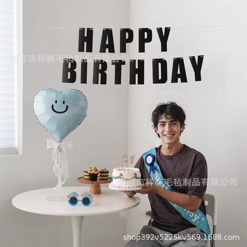 Ins森系シンプルアルファベットhappybirthday誕生日バナー