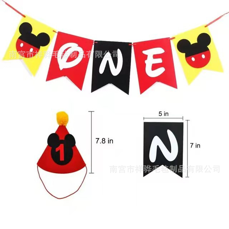 ミッキーの誕生日に旗を引くミッキーのミニーの1歳の旗のテーブルの旗のミッキーマウスの1歳の装飾の配置