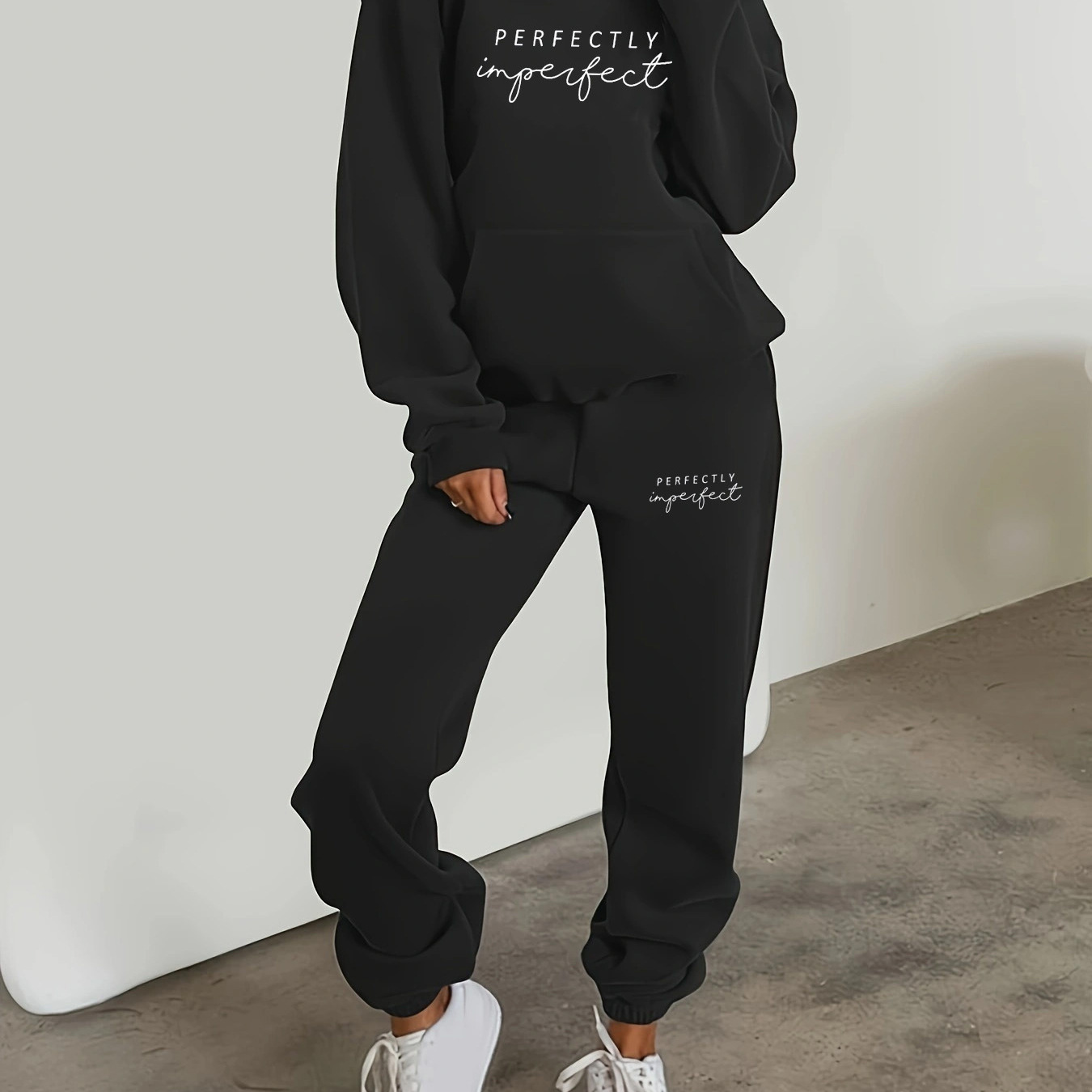 ヨーロッパとアメリカの国境を越えた売れ筋の女性のレタードフード付きスウェットシャツとズボンのスーツ秋冬プラスベルベット-A20プリント
