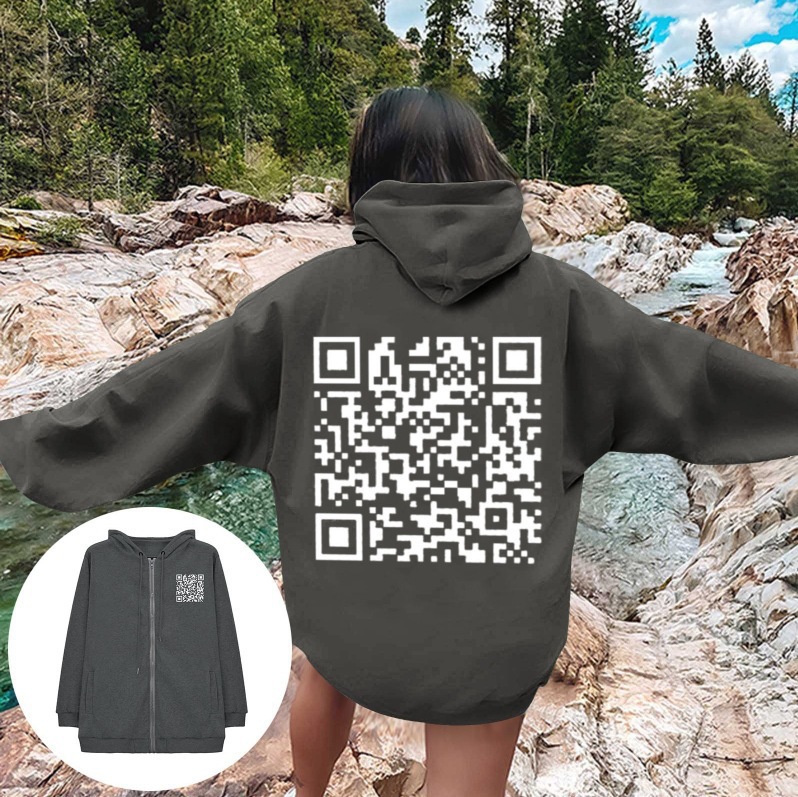 2024FUYou QR コードクロスボーダーヨーロッパコード男性と女性のベルベット QR コードラウンドネックスウェットシャツ工場卸売