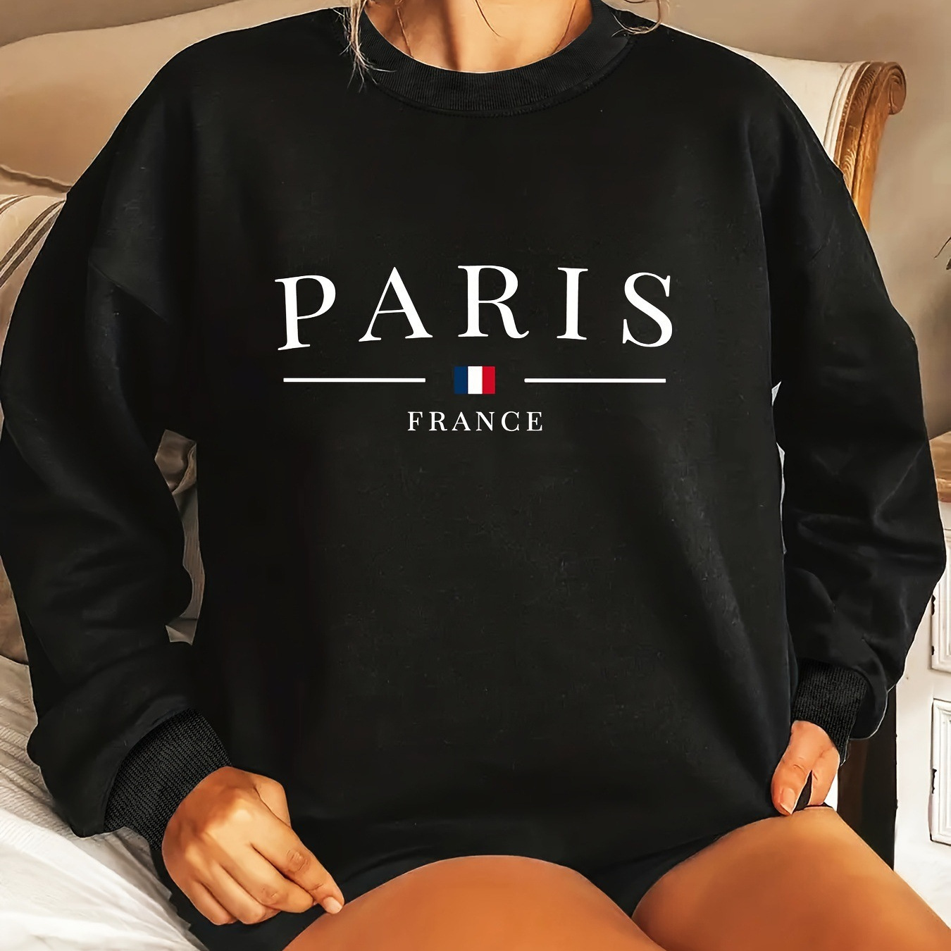 ヨーロッパとアメリカのクロスボーダー秋と冬の女性のカジュアル長袖ラウンドネックパリプリントプルオーバースウェットシャツ卸売