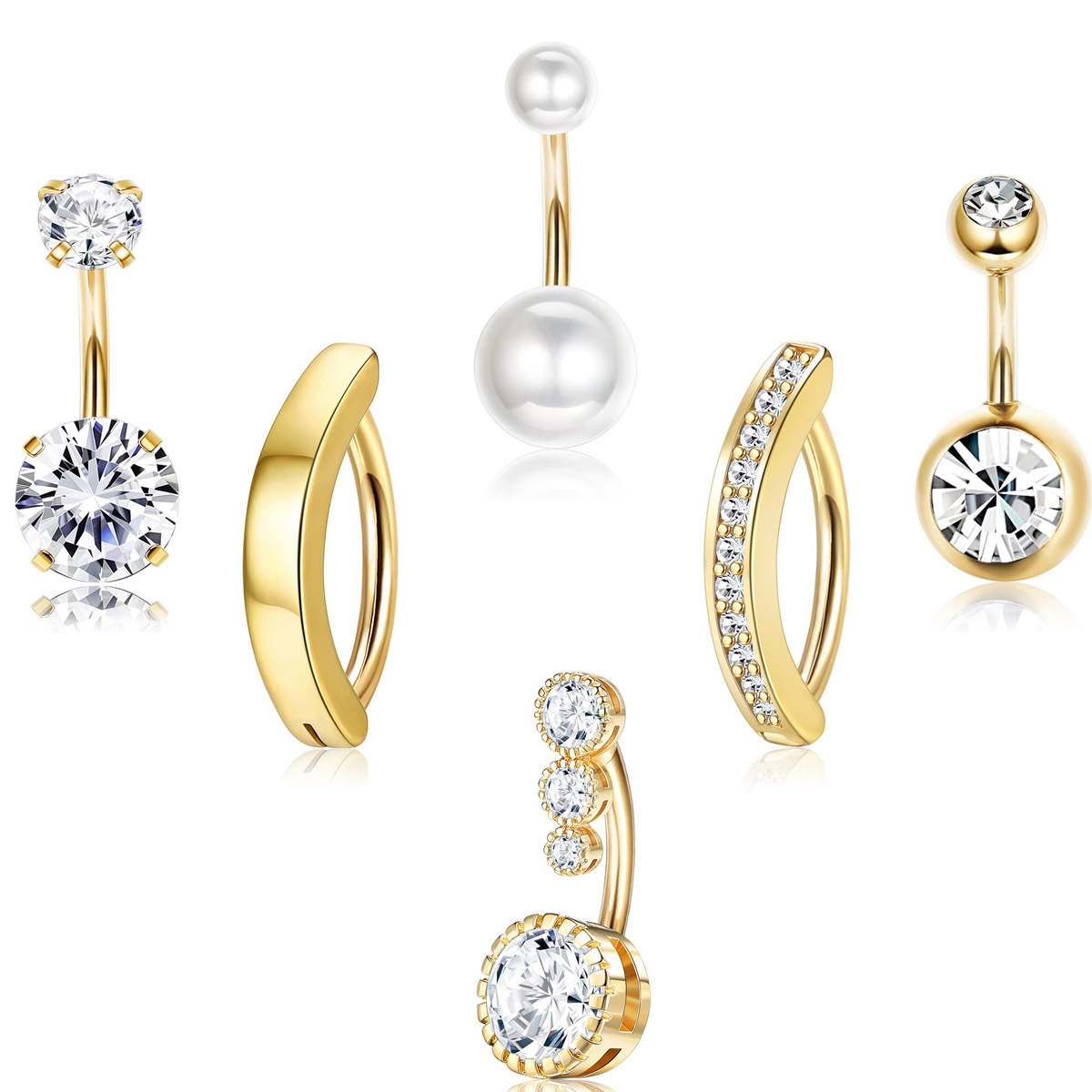 Amazonのジルコンとパールをあしらったへそピアス卸売セット、ヨーロッパとアメリカのステンレス製ピアス、多用途で輝くへそピアス
