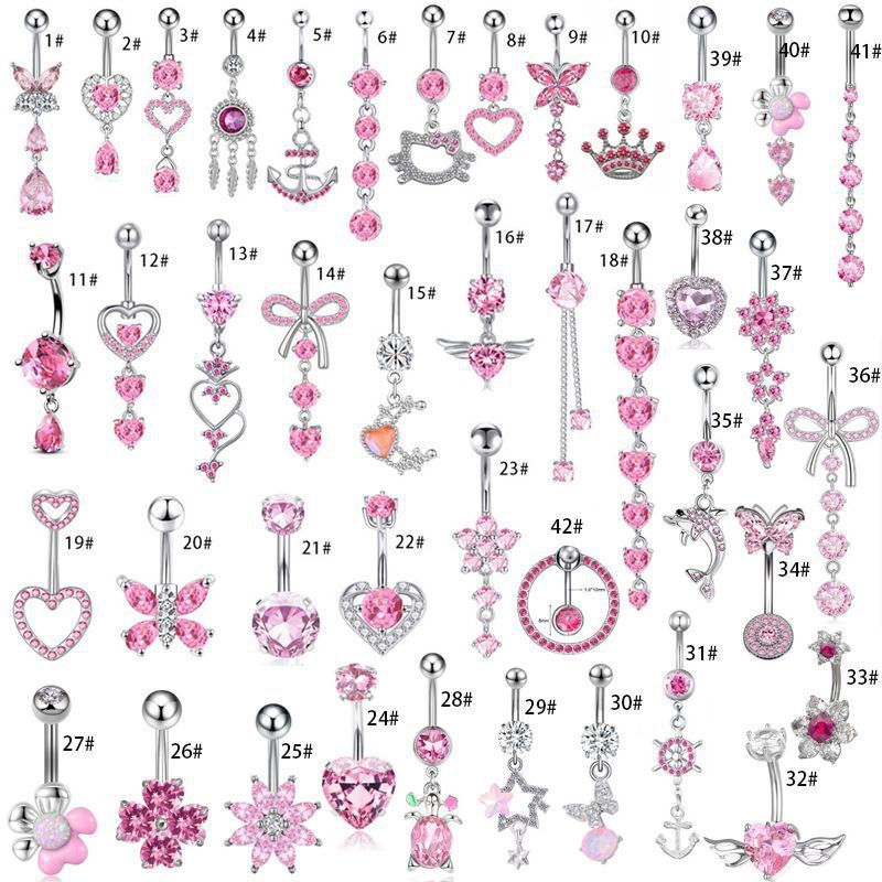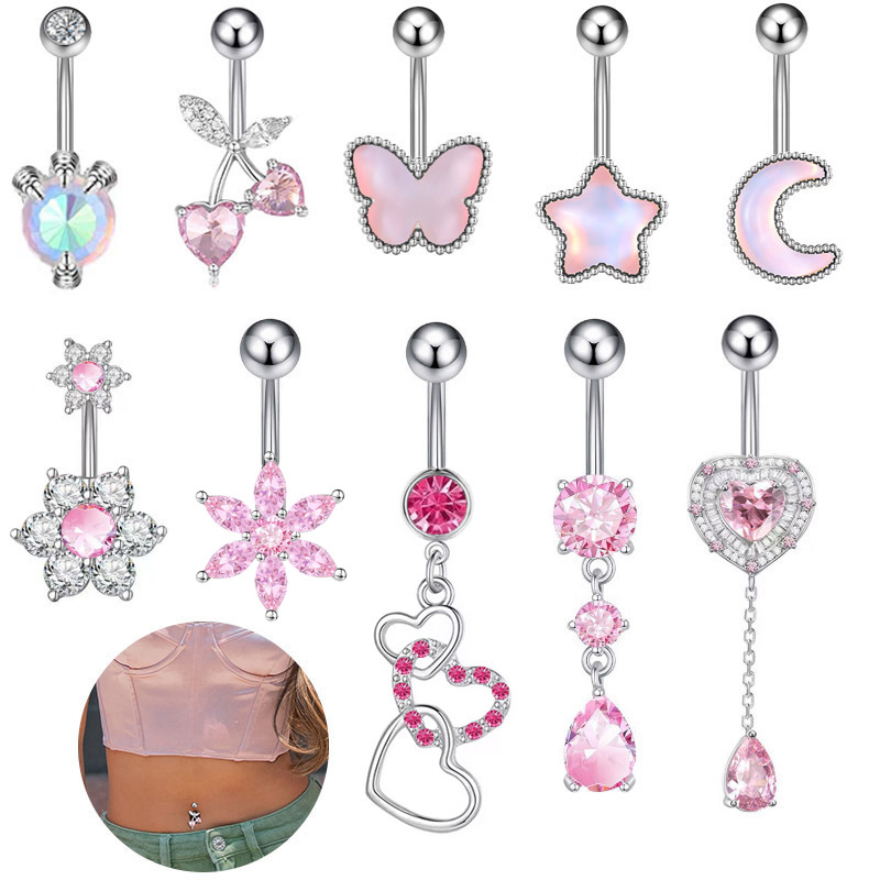 Amazonの新しいピンクシリーズへそピアス卸売、ヨーロッパとアメリカで人気の蝶ジルコンへそピアスペンダントピアスジュエリー