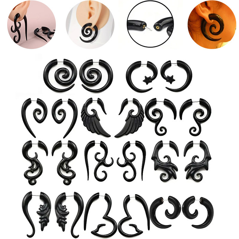 欧米のアクリルの偽のイヤリングの黒色の異形の耳の耳のピアスの個性のイヤリングのステンレスの竿の対称の穿孔の装飾品