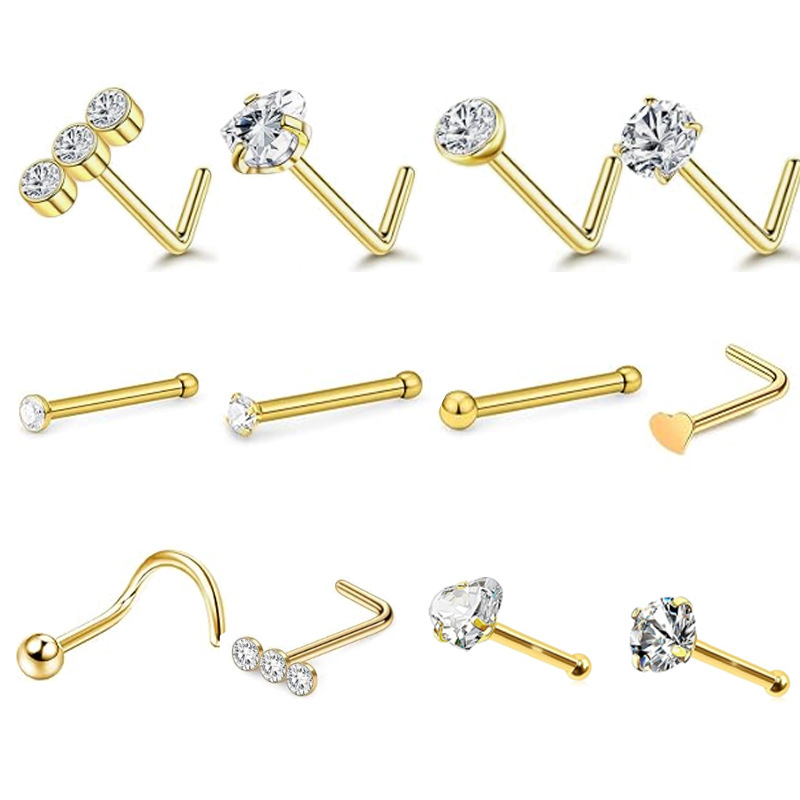 ステンレス鋼 L ロッド鼻ネイル象嵌ジルコンゴールド真空メッキ S ロッド鼻リングベーシックピアスジュエリー卸売