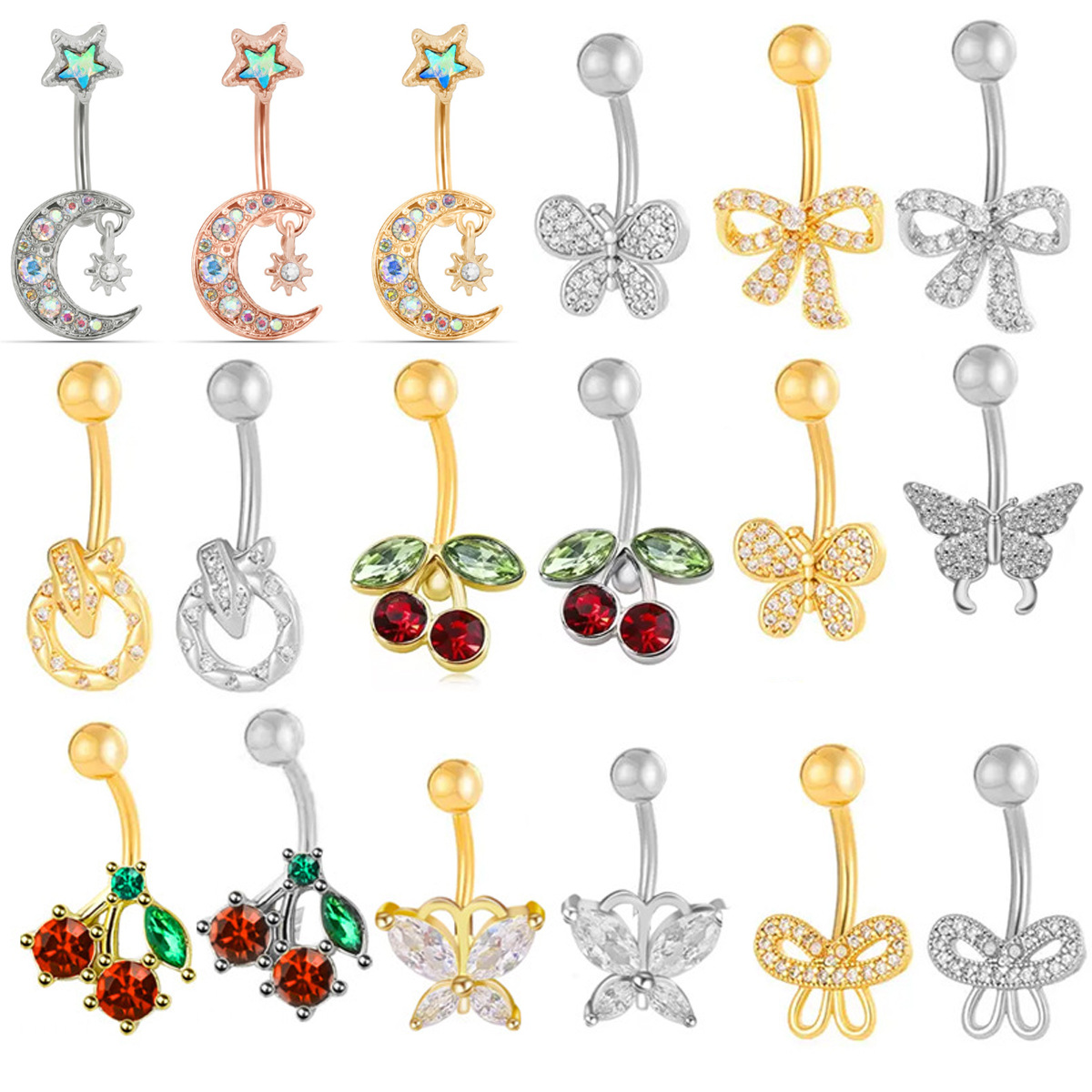 アマゾン越境欧米向けピアスジュエリー 月と星のへそピアス ステンレス製チェリーへそリング へそ飾り