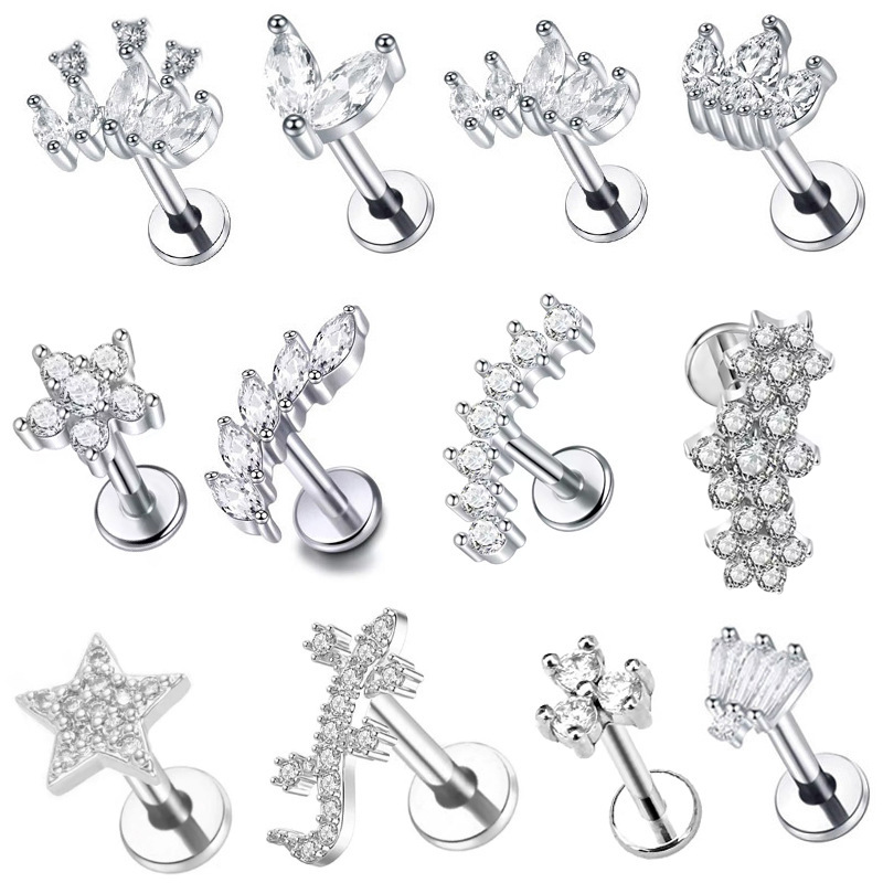 G23チタン製トレンディな3つのマーキスカットジルコンリップピアス、卸売クロスボーダーライトラグジュアリー平底軟骨ピアス、イヤリングジュエリー