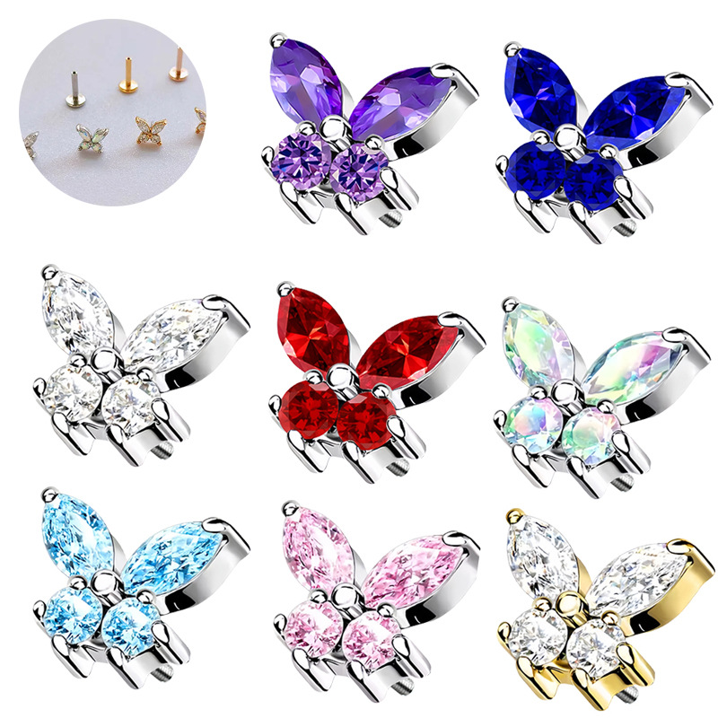 欧米の軽くて豪華なカラーの蝶のジルコンの部品のイヤリングのイヤリングの唇の釘の耳の骨の釘のステンレスのイヤリングのアクセサリーの卸売り