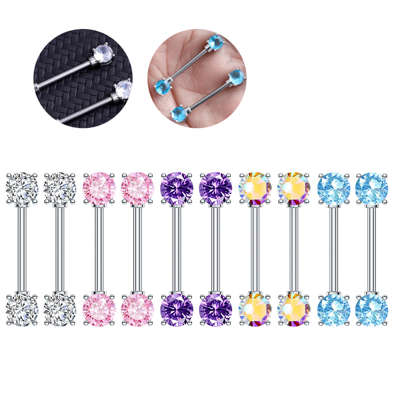 新しい7mmストレートロッドジルコン四爪クリームリングebayアマソンローズゴールドジルコン体穿刺アクセサリー