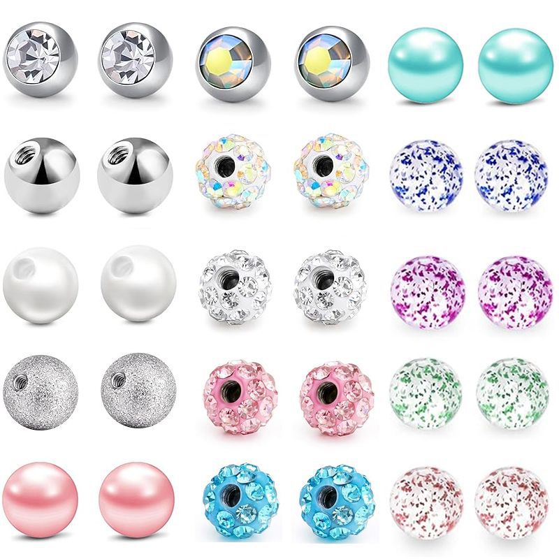 アマゾンねじ臍釘DIYフラッシュボール舌釘へそリング眉釘唇釘交換ボールアクリル穿刺