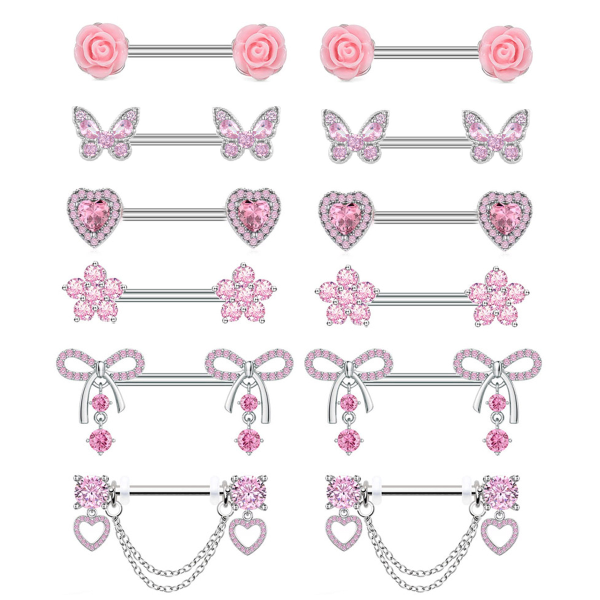 かわいいピンクのステンレスの桃の心のジルコンのペンダントの乳環の美しいバラの乳釘の人体の穿刺の穿孔品