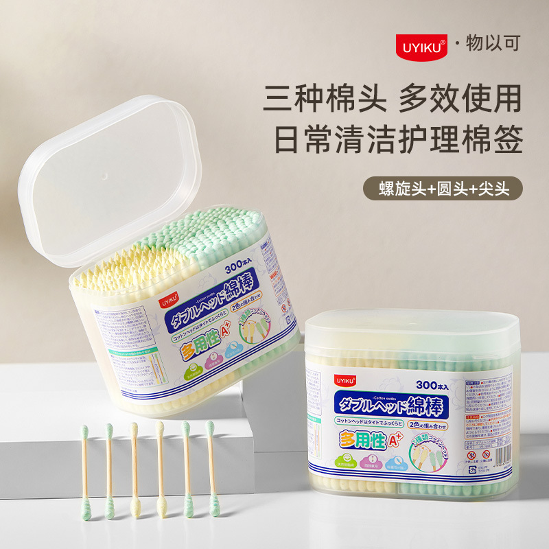 300本2色の綿棒多機能綿棒使い捨て衛生綿棒の小先の細い頭の耳のスプーンをつけて清潔にします。