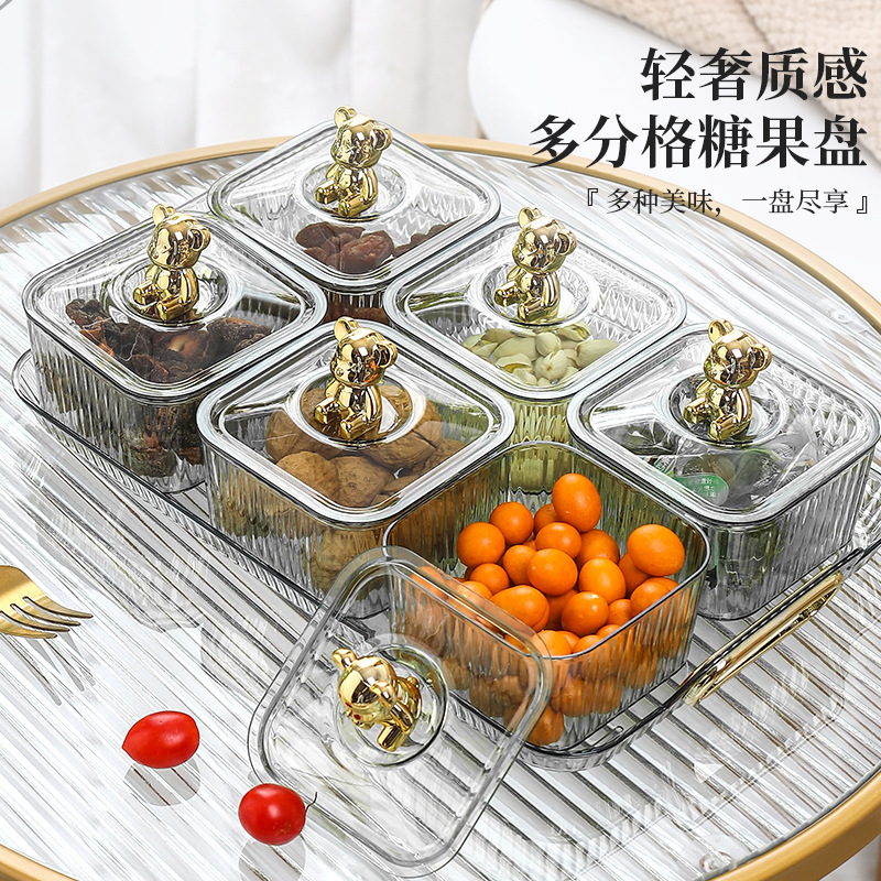ドライフルーツプレート、家庭用コーヒーテーブル、フルーツプレート、高見えするリビングルームスナックプレート、キャンディーメロンシード、蓋付きプラスチックスナックプレート
