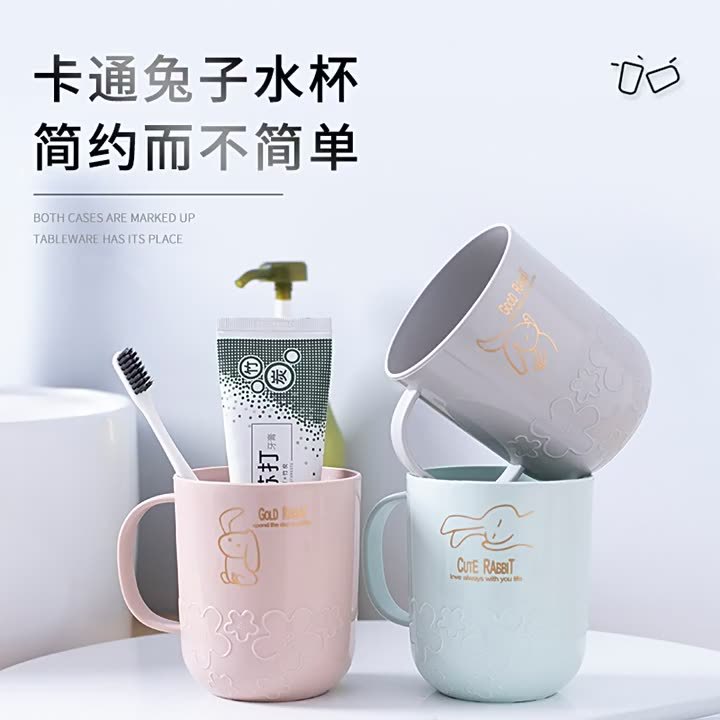 無地のかわいいうがいコップ、漫画風子供用うさぎ歯ブラシカップ、家庭用シンプルカップル洗面コップ、卸売、環境に優しい