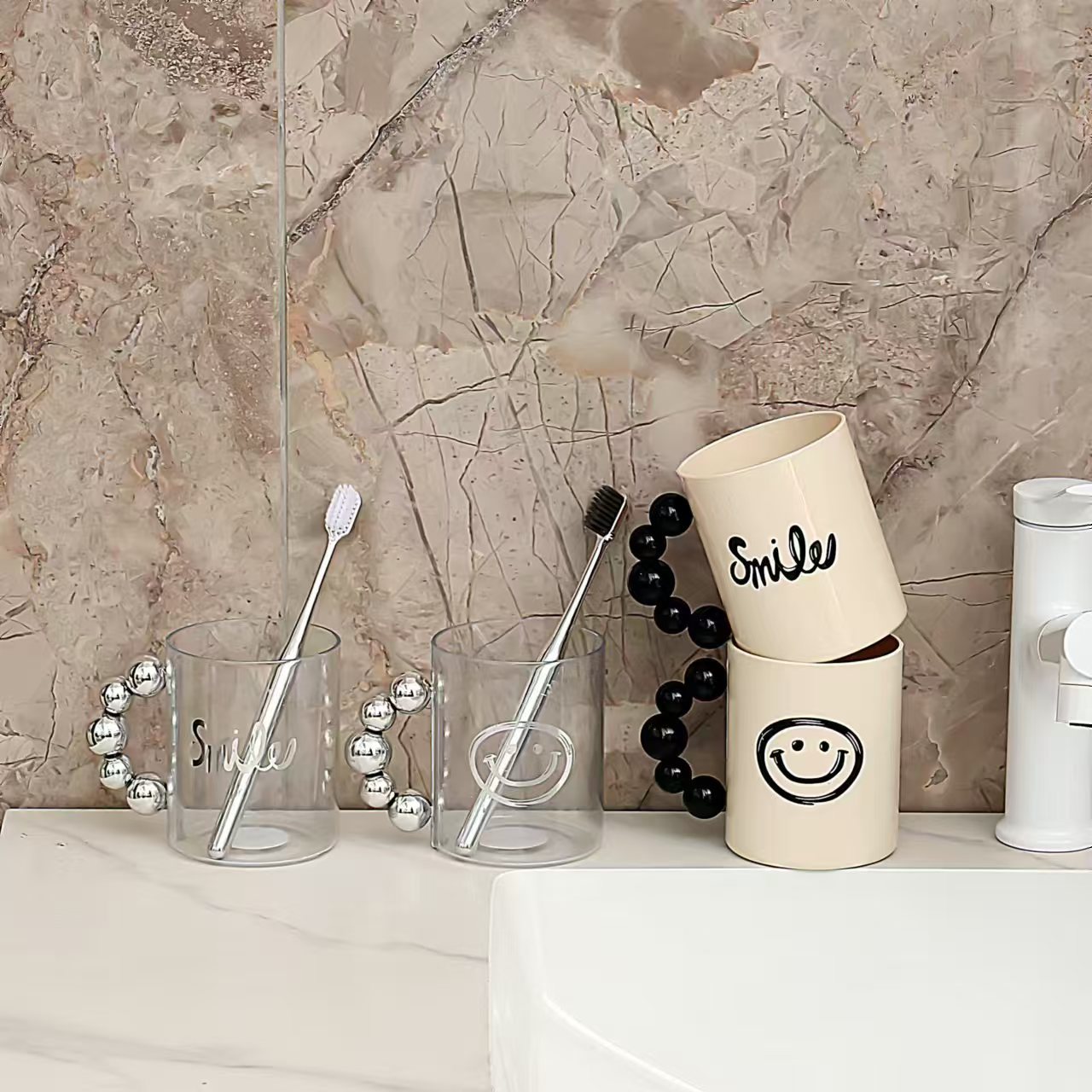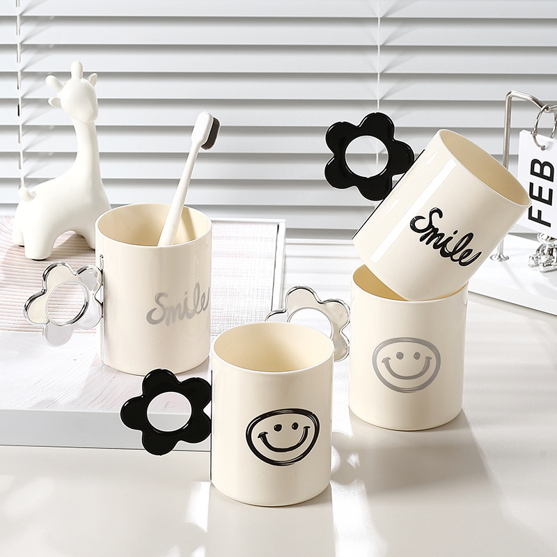 家庭用の真珠の取っ手のうがいのコップの卸売りのアルファベットの笑顔のネットの赤いカップルの歯の杯の寮のinsは簡単に歯のコップを洗います。