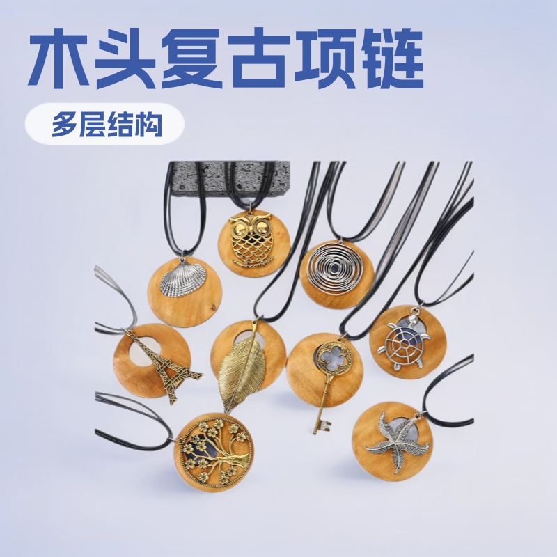 クロスボーダー木製レトロセーターチェーン女性の綿とリネンアクセサリー木製エスニックスタイル合金ペンダントネックレスペンダントジュエリー