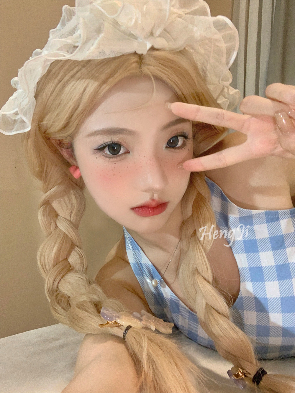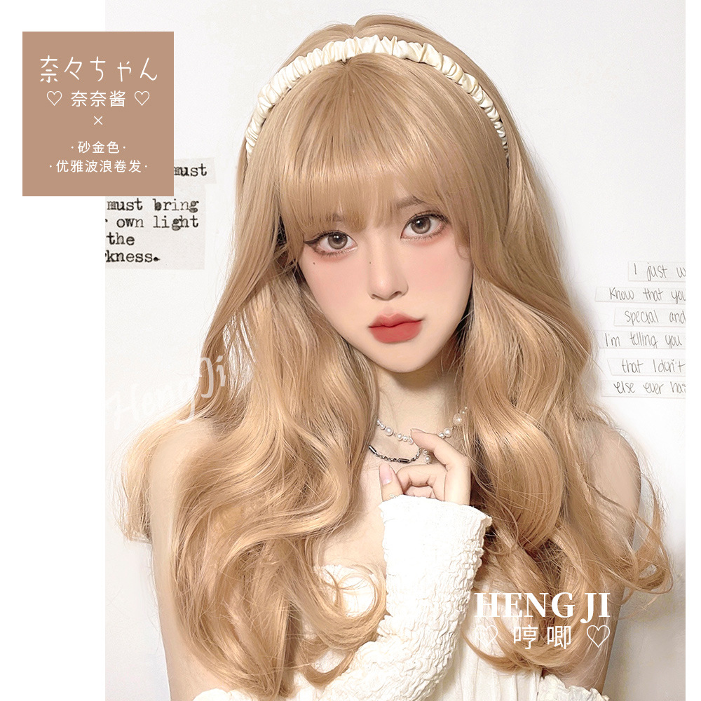 クロスボーダーlolitaかつら女性ロングヘアナチュラルふんわりビッグ波ミディアムロングゴールドラウンドフェイシャルかつらカバー