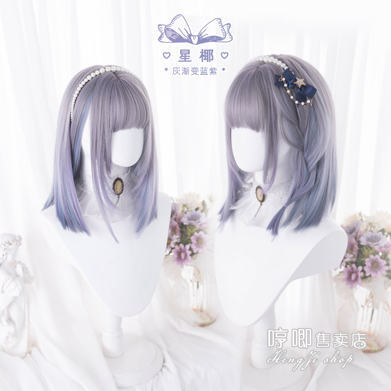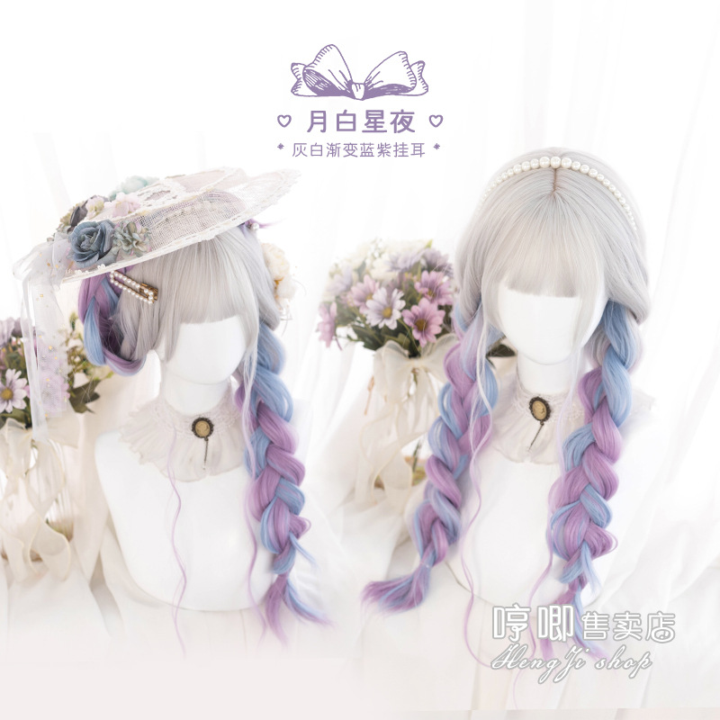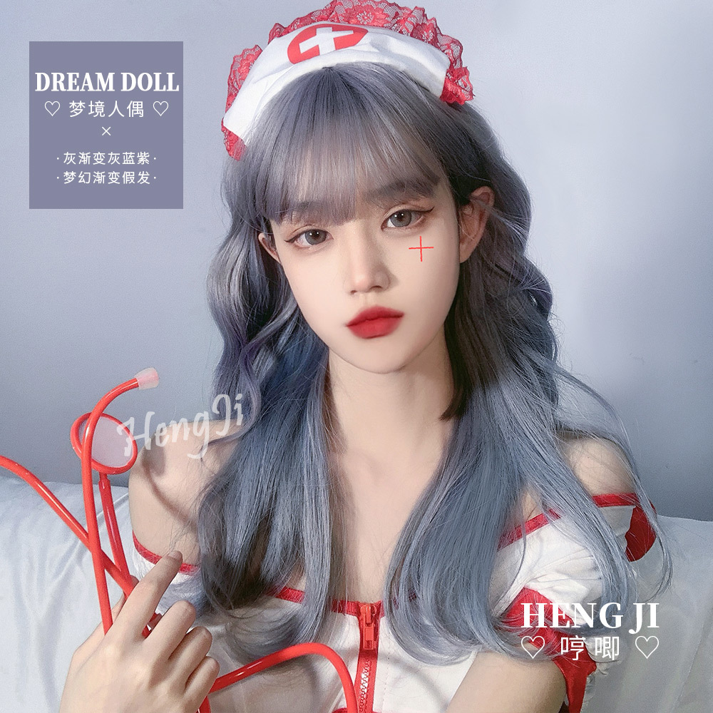 クロスボーダーかつら女性ロングヘア大きな波lolitaラウンド顔カール青紫jkネットレッド全頭カバー