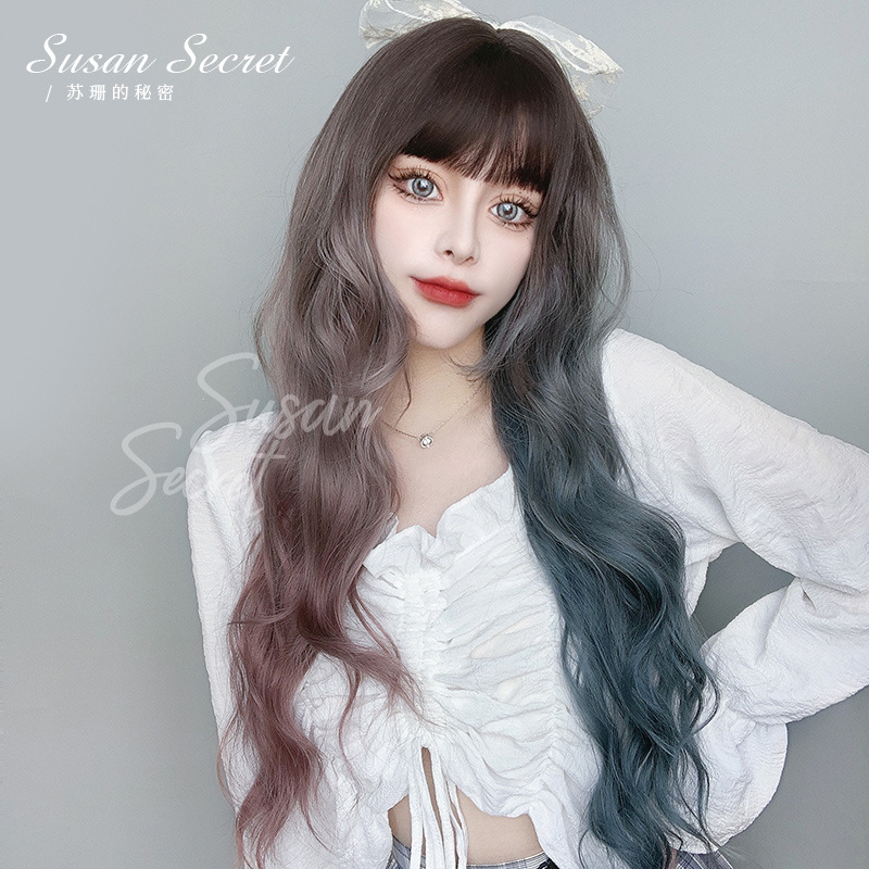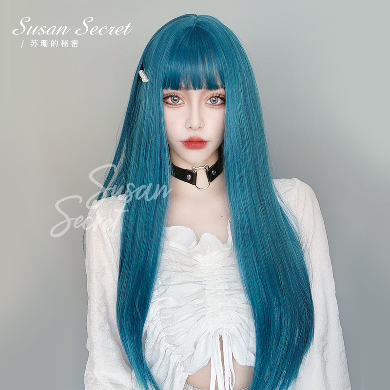 クロスボーダー卸売ネットレッドかつら女性ロングヘアブルー全体カバーロングストレート自然lolitaロリータ日常髪